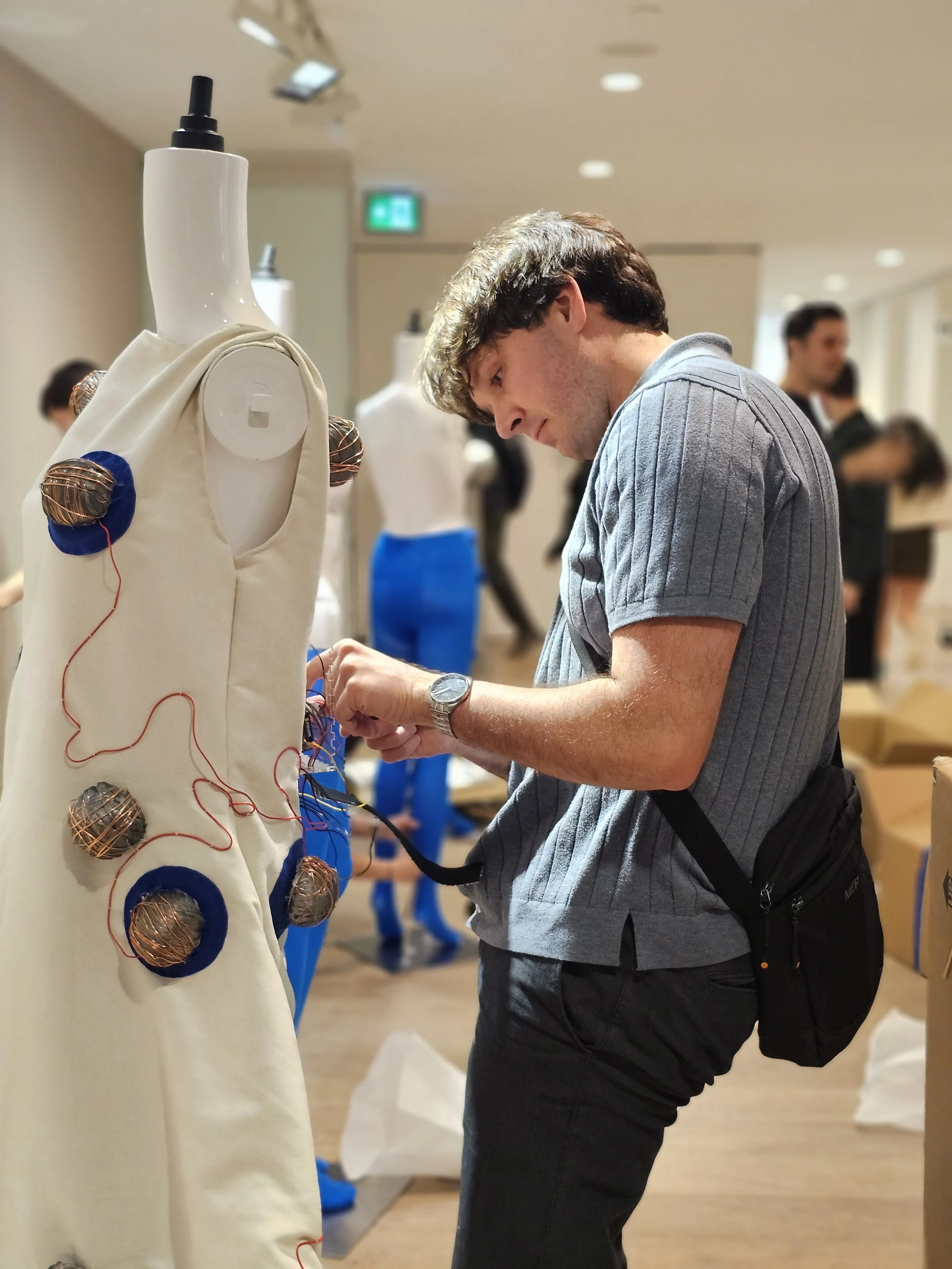 Seven interactive garment-based sound sculptures, each with its own sound world, visuals, and mode of interaction. Fashion becomes functional art, a wearable instrument, and a different form of sonic and visual expression rooted in human touch. Bridging the art of fashion with electroacoustic music production technique and physical interaction, each of these sculptures are focused on the integration of specific sensors, used to trigger different sounds and audio processing. The garments/sculptures uses a range of sensors and conductive materials, to fully integrate bodily interactions. All sounds are created through an embedded system, using specific microcontrollers for each sculpture.